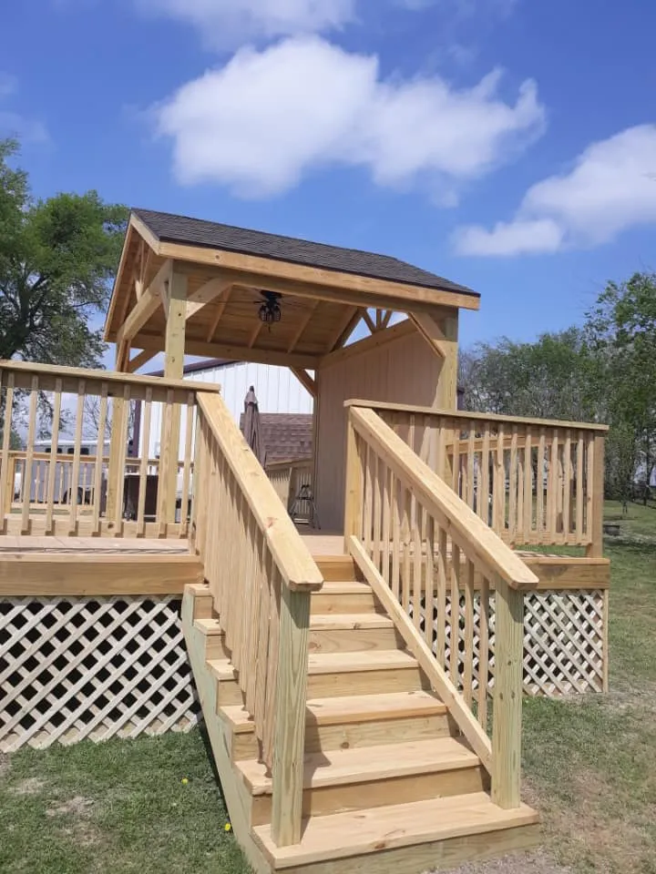 Our custom-sized decks are designed to fit your outdoor space perfectly, providing a sturdy and attractive area for relaxation and entertainment. We offer a range of options to suit your needs, including railing, staining, and stairs, all crafted with precision and care. Whether you’re looking for a simple platform or a more complex design, we’ll create a deck that enhances your home and suits your lifestyle.